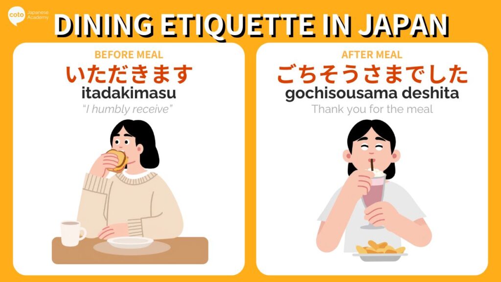 “I humbly receive” (Itadakimasu) and “That was a feast” (Gochisousama).